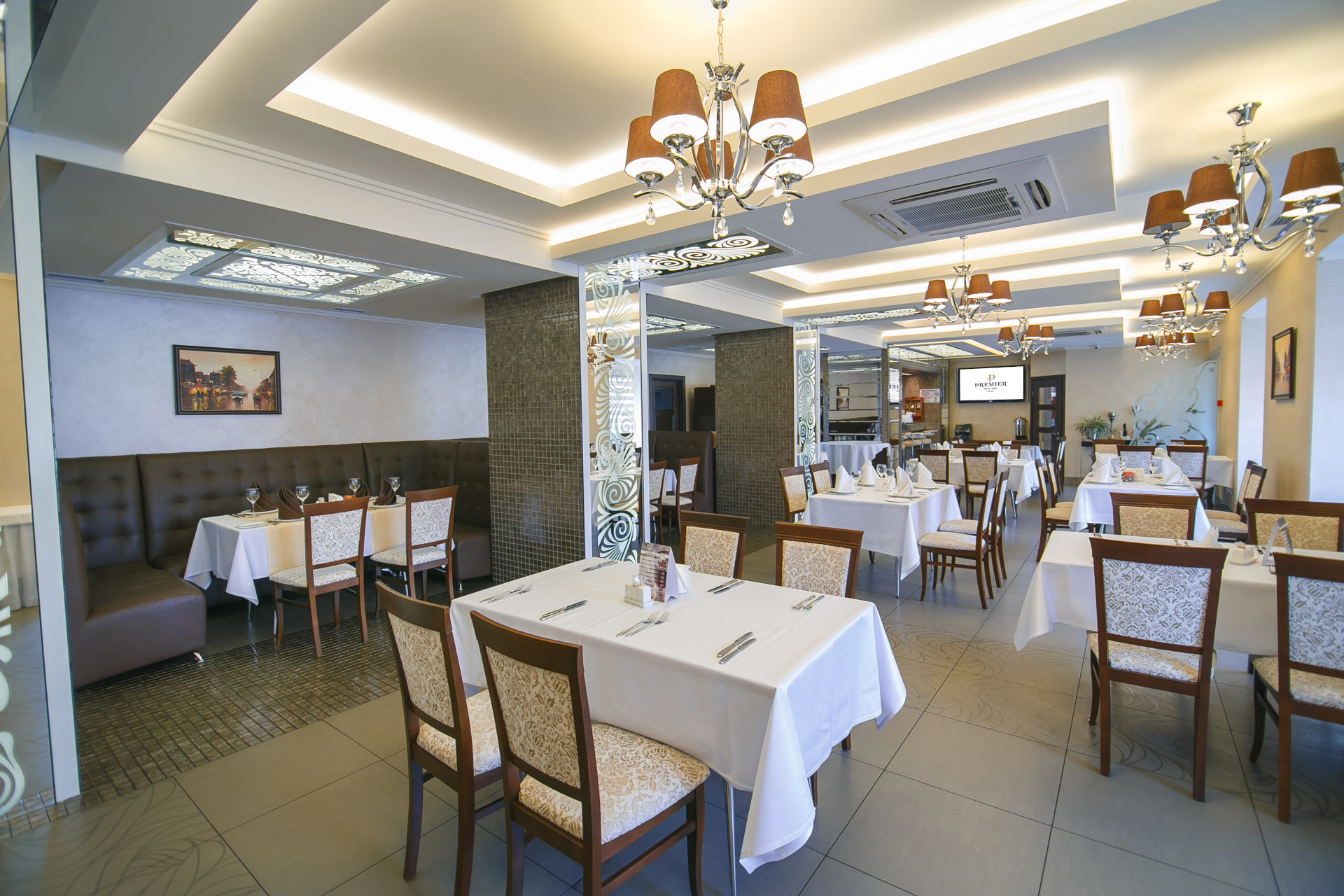 На першому поверсі, окрім стійки реєстрації , є ресторан з виходом на літню терасу. Лаунж-бар готелю «ABRI» відрізняється вишуканою і затишною атмосферою.